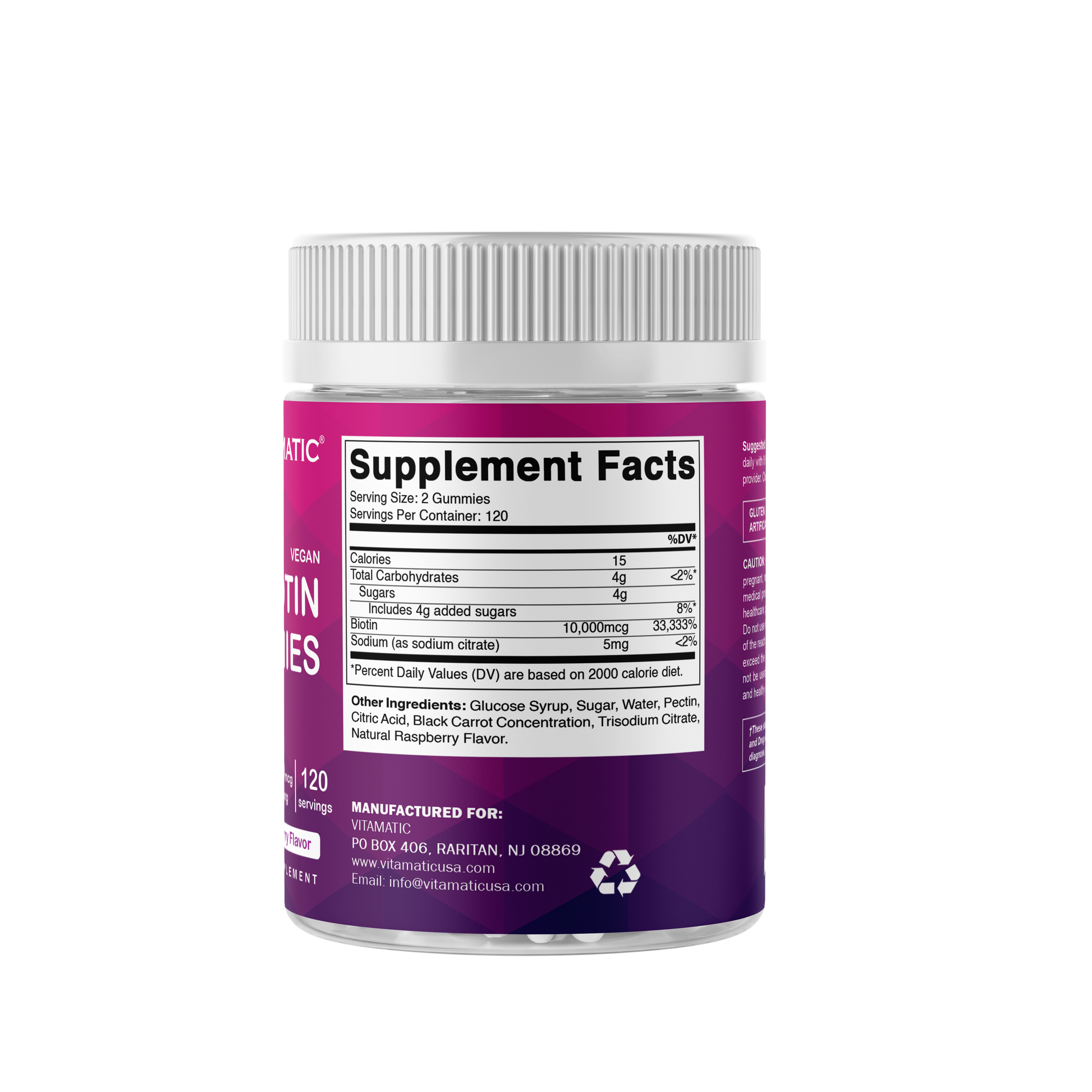 Vitamatic Biotin Gummies 10,000 mcg- 240 Vegan Gummies